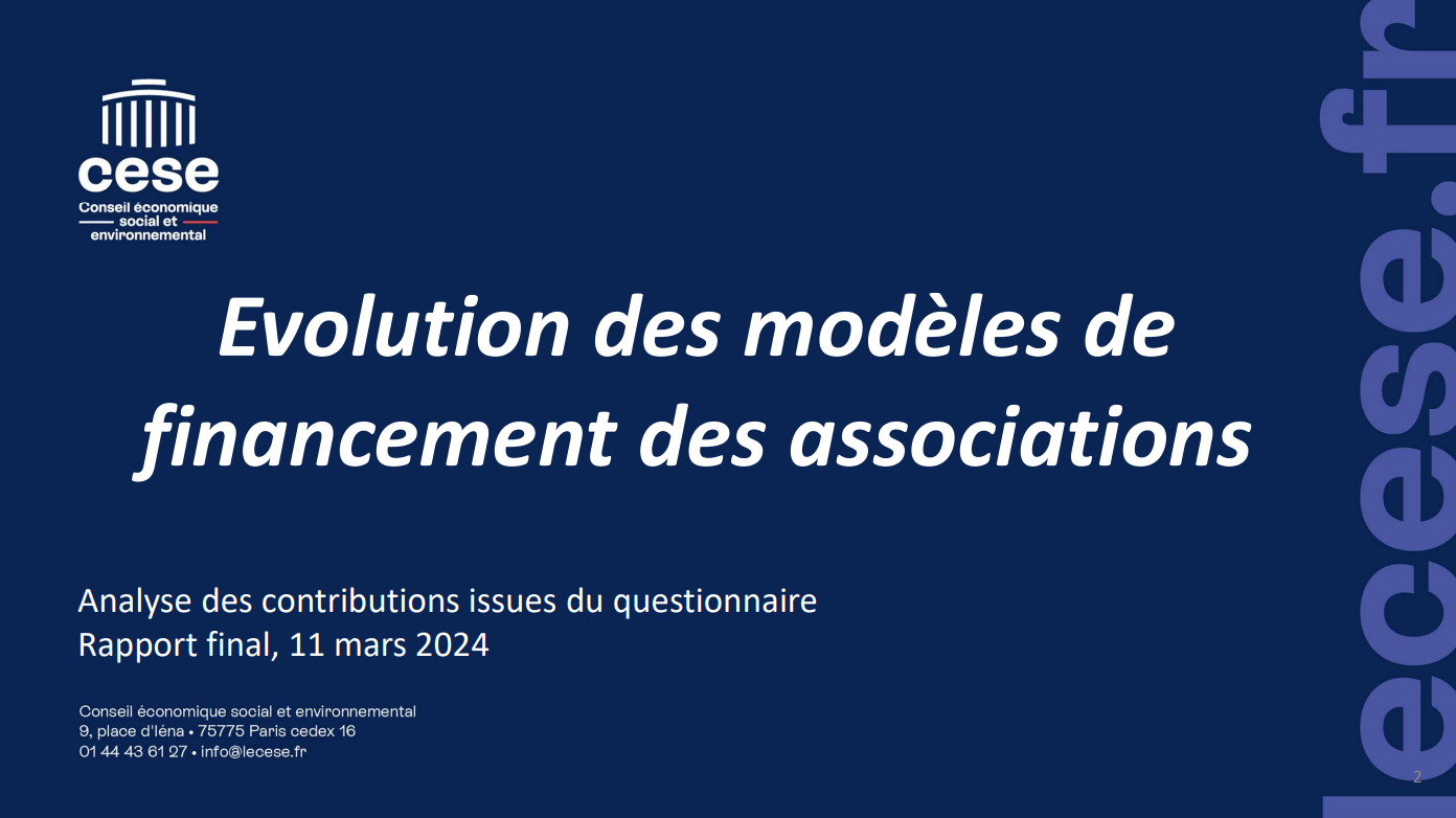 Pour nourrir sa réflexion sur le sujet du financement des associations, le CESE a lancé du 23 janvier au 14 février 2024 une grande consultation sur la base d’un questionnaire auprès des associations sans objectif de représentativité